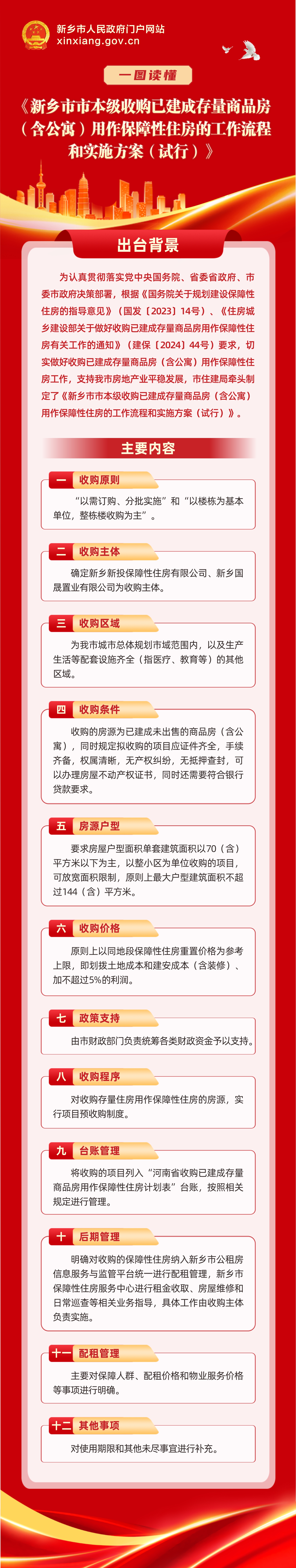 图解:《新乡市市本级收购已建成存量商品房(含公寓)用作保障性住房的工作流程和实施方案(试行)》